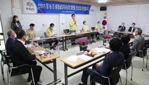 양승조 충남지사, 논산 일대서 방역 현장 점검 및 간담회 개최