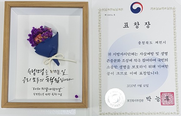 제천시, 2020 자살예방의 날 장관상 표창