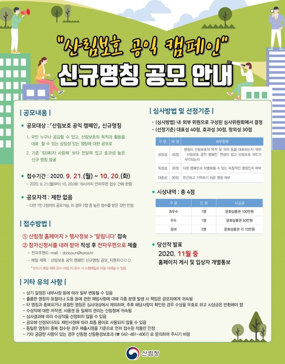 산림청, 산림보호 공익 캠페인 신규명칭 발굴 공모전 개최