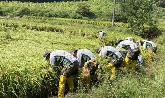 세종시 연기면, 벼 쓰러짐 피해복구 작업 구슬땀