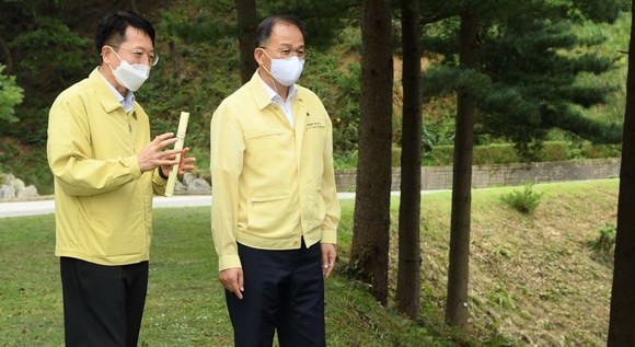 [포토] 박종호 산림청장, 추석 연휴 국립하늘숲추모원 방역 상황 점검