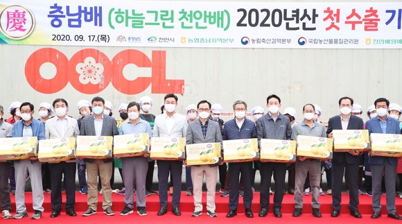 천안시, 하늘그린 천안배 올해 첫 미국 수출 선적식 개최