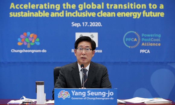 양승조 충남지사, 탈석탄 동맹·유엔 공동 주최 세미나서 초청 연설