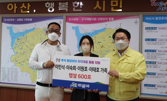 아산시, 이민식·이숙희씨 가족 취약계층 지원 햅쌀 600포 후원