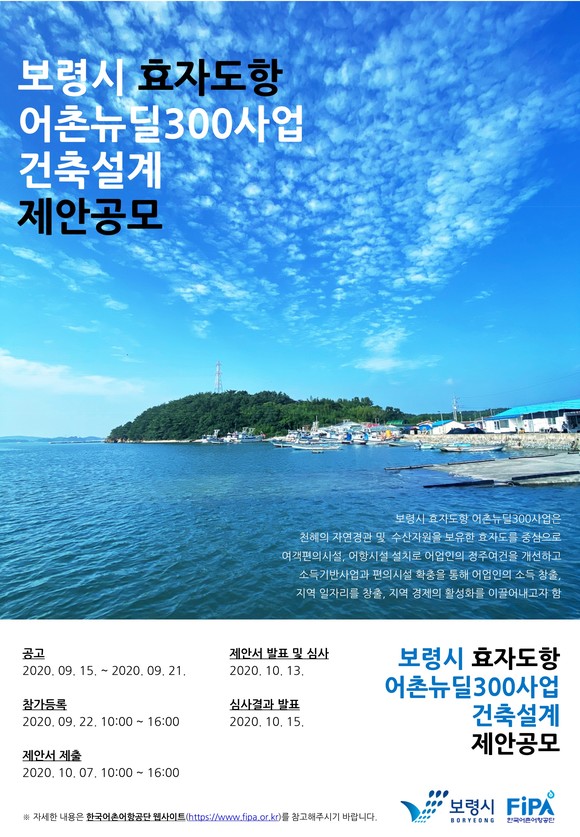 어촌어항공단 '보령시 효자도항 어촌뉴딜사업' 건축설계 제안공모 시작