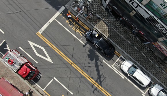 보령소방서 '드론' 활용 불법 주·정차 단속 눈길