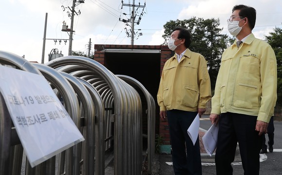양승조 충남 지사, 청양 집단감염 대응 현장 점검
