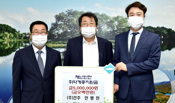 제천시-㈜건주, 재난안전취약계층 지원금 기탁