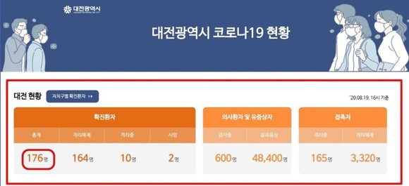 대전시, 코로나19 (175번, 176번) 확진자 2명 추가 발생…총 176명
