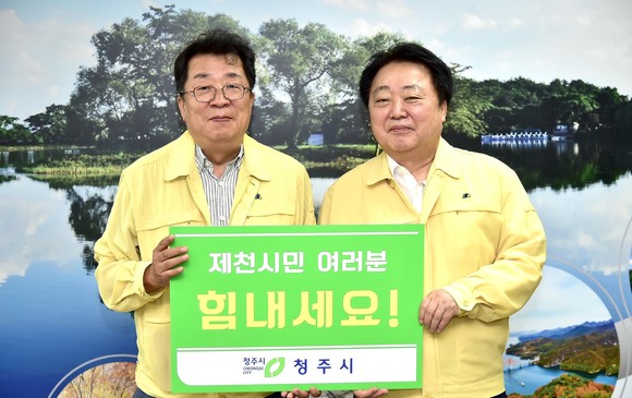 한범덕 청주시장, 제천시 찾아 구호물품 전달