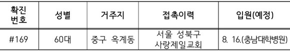 대전시, 169번 확진자 서울 성북구 사랑제일교회 방문 후 확진
