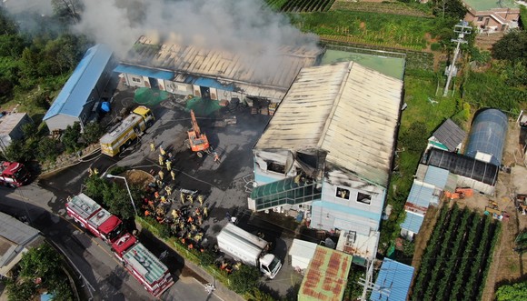 보령소방서, 공장화재 현장서 '소방드론' 활용