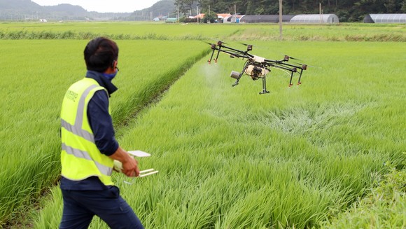 태안군, 벼 병해충 드론 항공방제 실시