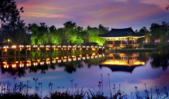 부여군 대표적인 야간 관광명소 '궁남지'