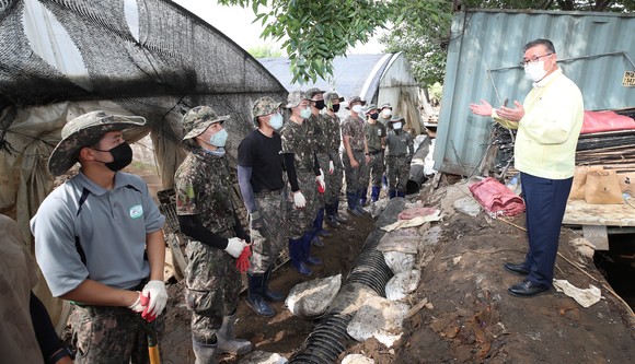 맹정호 서산시장, 수해쓰레기 수거로 일과 시작