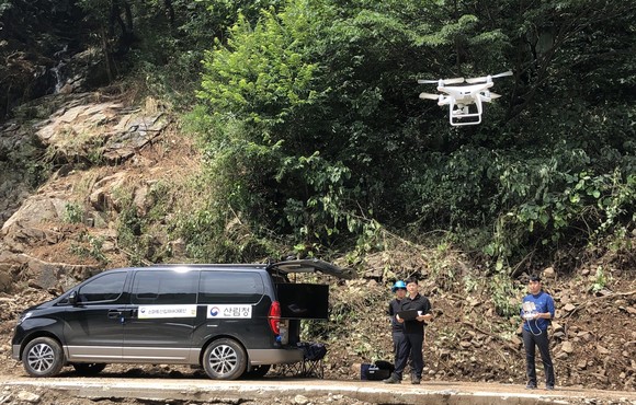 [포토] 산사태 피해지 드론으로 조사한다