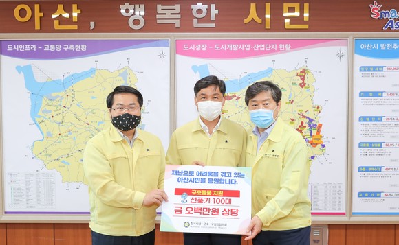 전국시장군수구청장협의회·충남시장군수협의회, 아산시에 수해복구지원 물품 전달