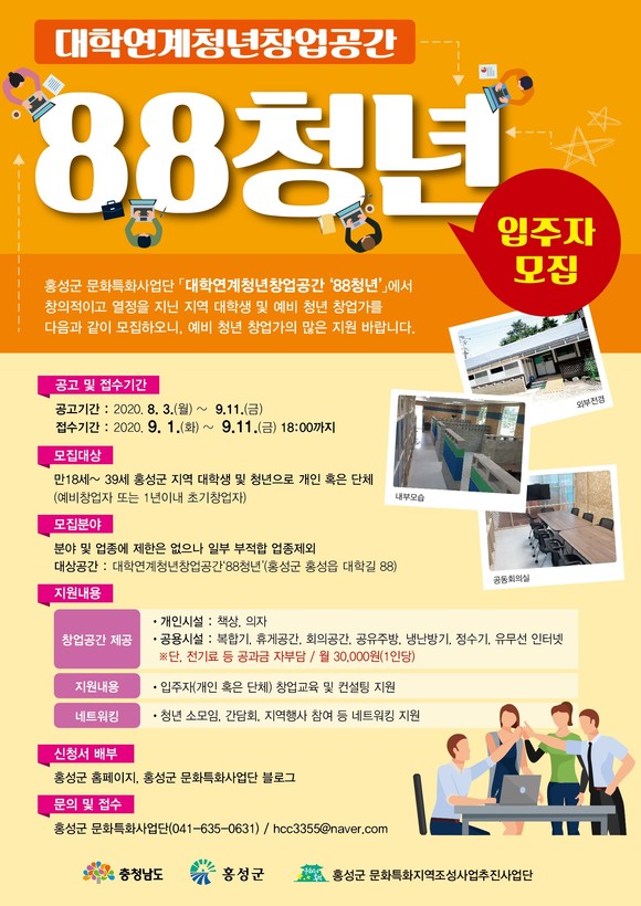 홍성군 청년창업공간 '88청년' 입주자 모집