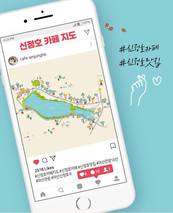 아산시 한 눈에 보이는 '신정호 카페 지도' 제작