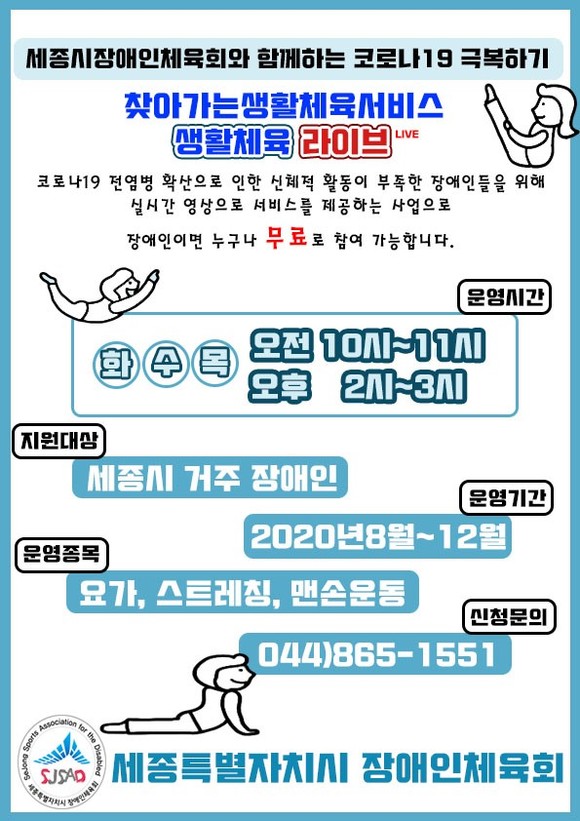 세종시 '실시간 화상 연결' 생활체육 라이브로 운영