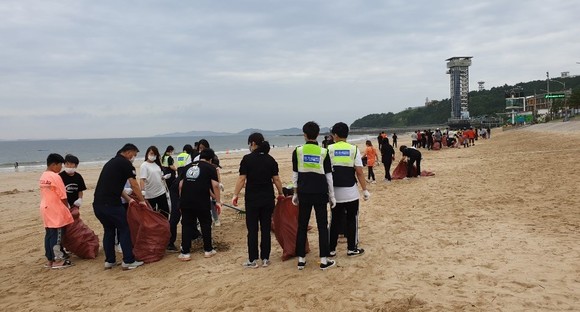 [포토] 보령시자율방범연합대, 해수욕장 환경정화 '구슬땀'