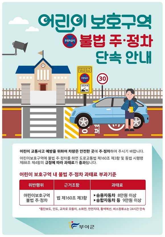 부여군, 어린이보호구역 불법 주·정차 주민신고제 시행