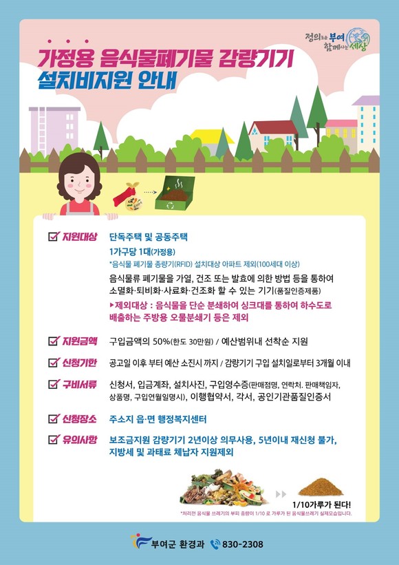 부여군, 음식물쓰레기 감량기기 설치보조금 지원