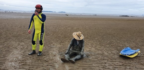 보령해경, 서천 장포해변 갯벌 고립 관광객 발견 긴급구조