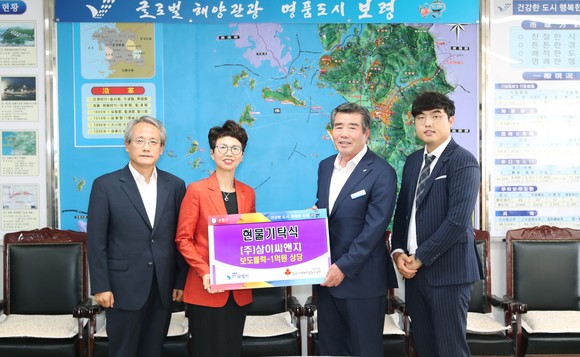 보령시-삼이씨앤지, 저소득 30가구에 1억 상당 보도블럭 후원
