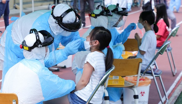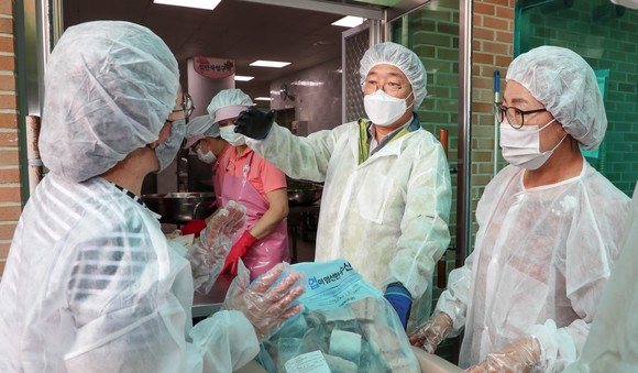 [포토] 허태정 대전시장, 학생 검체 채취 및 방역현장 점검