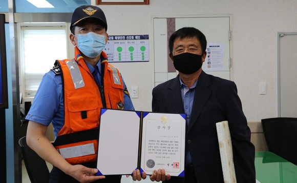 보령해경, 밀입국 의심 선박 신속히 확인 해준 주민에 감사장 수여