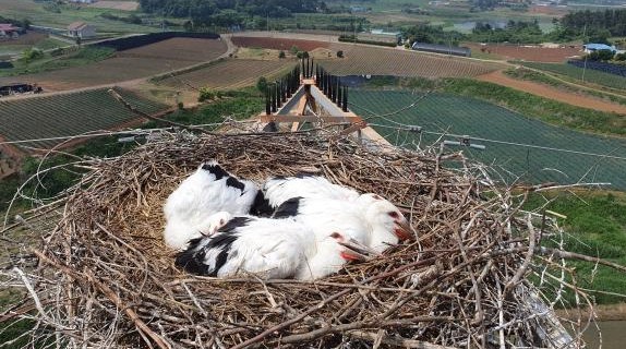 예산군, 송전탑 황새보호 위해 전기사고 예방장치 설치
