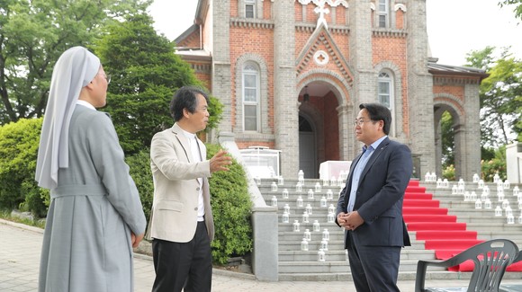 오세현 아산시장, 성체와 성혈 대축일 앞두고 공세리성당 방문