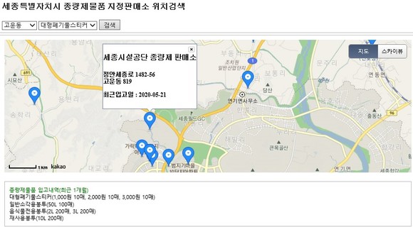 세종시 "가까운 종량제봉투 판매소 위치 한눈에 쏘옥"