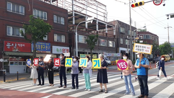 아산시 온양2동 민·관 합동 차량 정지선 지키기 캠페인 전개