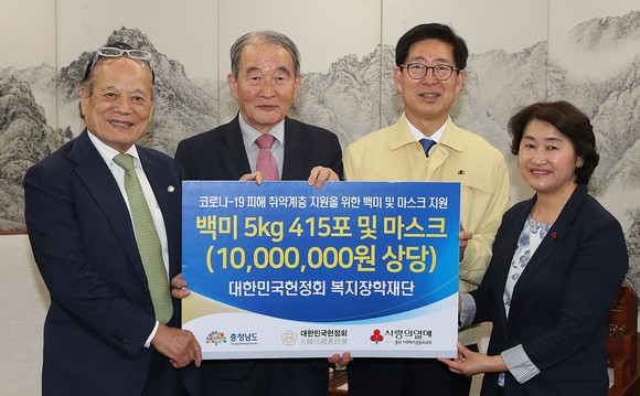 충남도-대한민국헌정회 복지장학재단, 쌀·마스크 전달식 개최