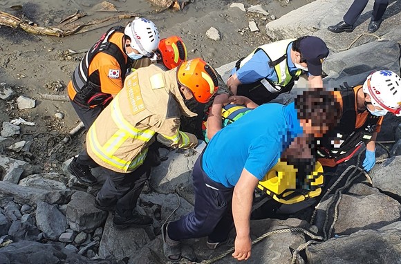 보령해경, 충남 서천 항포구 정화활동 중 방파제 추락 주민 긴급구조