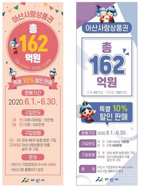 아산사랑상품권, 162억원 10% 특별할인 추가 발행