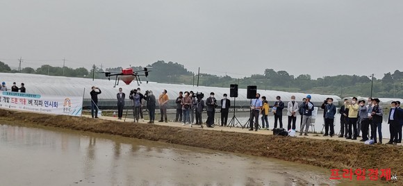 충남도 농기원, 드론 벼 직파 연시회 개최