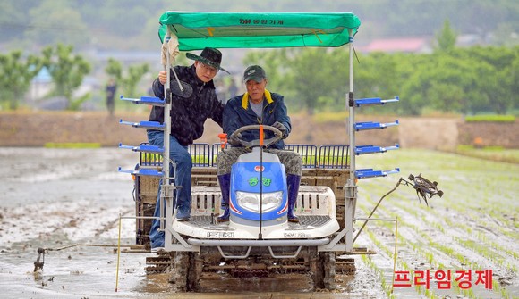 김정섭 공주시장, 이앙기 직접 몰며 모내기 체험