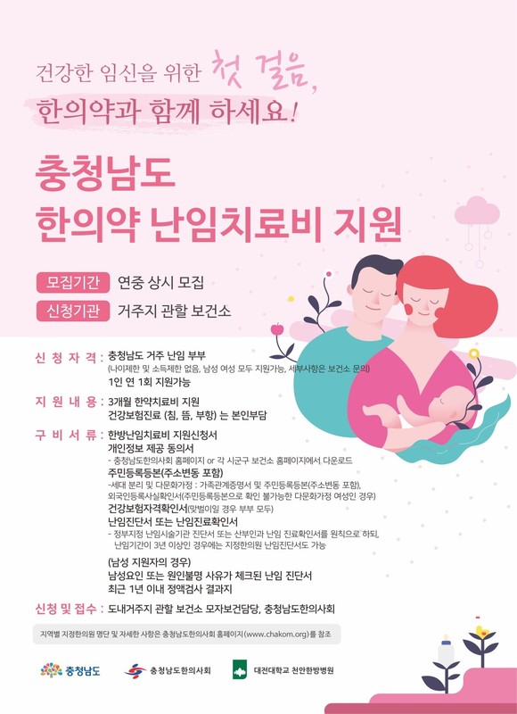 충남도, 난임 부부 한방치료 지원 대상 확대