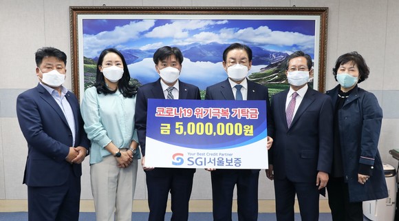 계룡시 SGI서울보증과 '코로나19 극복성금' 기탁식 가져