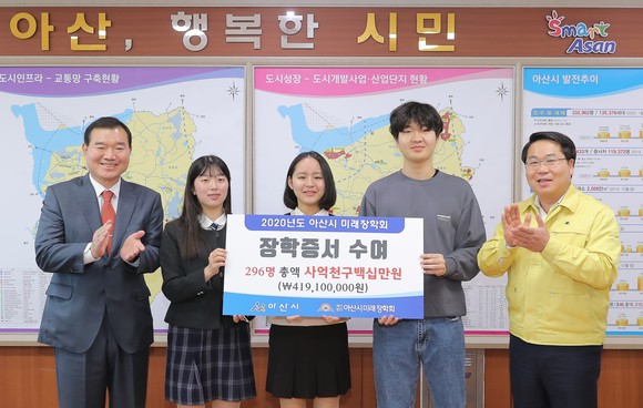 아산시미래장학회, 미래인재 양성 위해 296명에 장학금 4억원 전달