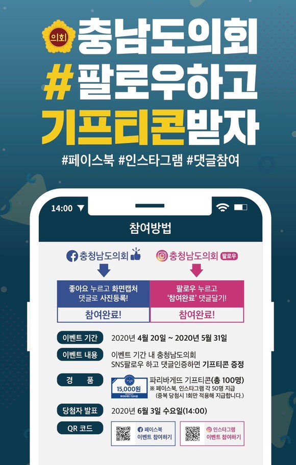 충남도의회 "페북·인스타 구독하고 경품 받으세요"