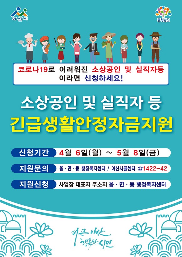 아산시, 6일부터 '코로나19 긴급 생활안정자금' 신청접수