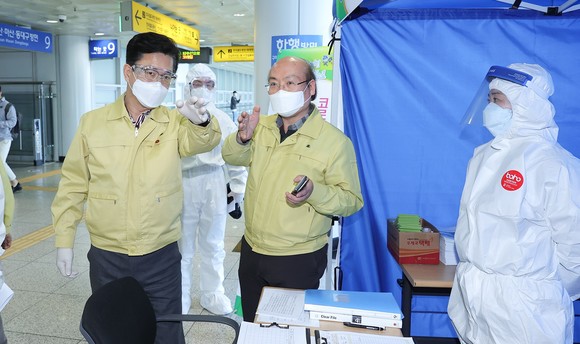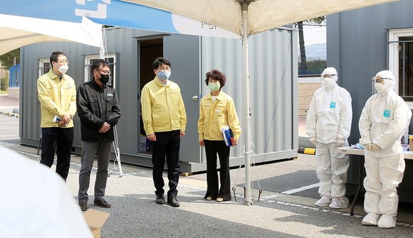 허태정 대전시장, 해외입국자 선별진료소 방문 격려
