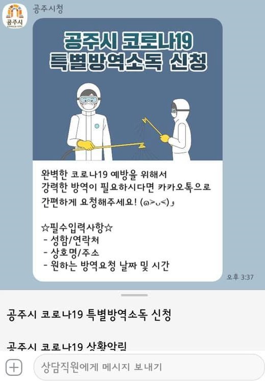 공주시 코로나19 방역소독 '카톡'으로 신청 접수