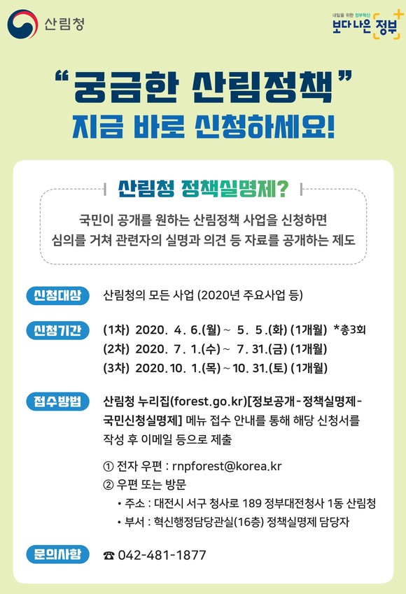 산림청, 국민신청실명제로 정책 투명성 책임성 강화