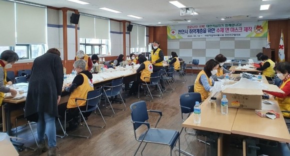 천안시, 자원봉사자와 마스크 1만1300개 제작