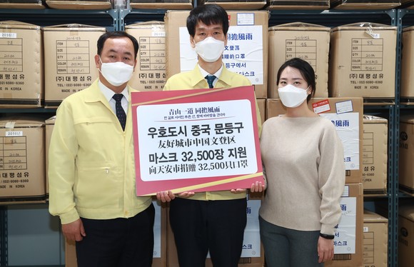 천안시, 우호도시 중국 문등구 마스크 3만2500장 마스크 지원